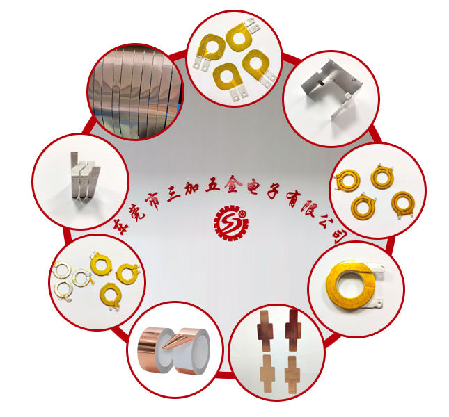 三加 · 產(chǎn)品展示主營(yíng)五金配件,大功率線圈,銅材沖壓成型,自粘銅箔,銅箔,銅帶